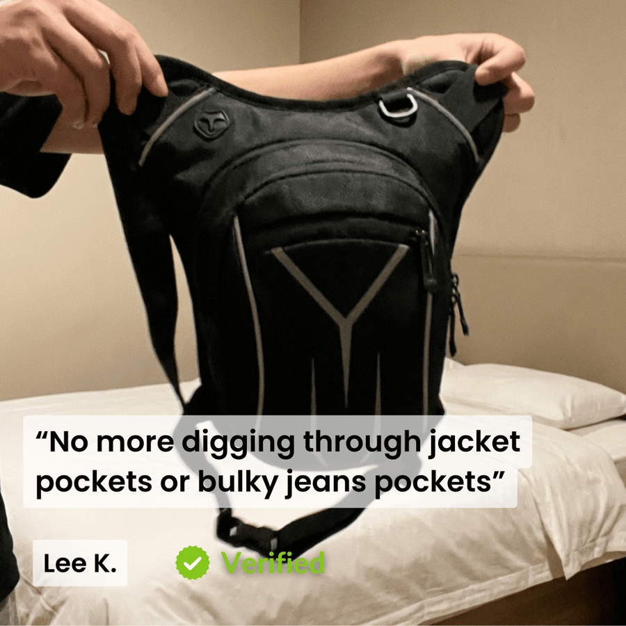 Absolutely. The dual-strap system (waist + thigh) locks the bag securely to your leg. It won't ride up, shift around, or interfere with your riding position.